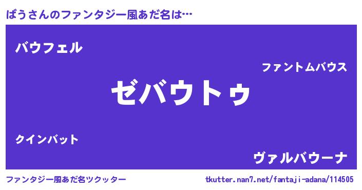 | 男性向けラノベタイトル風あだ名 | 『Re:ばうから始める異世界生活』 |