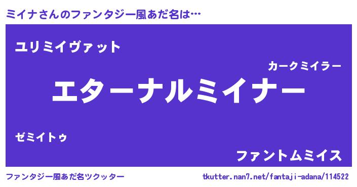 | 欧米人風あだ名 | 『ミイナクリステル』『トリンドルミイナ』 |