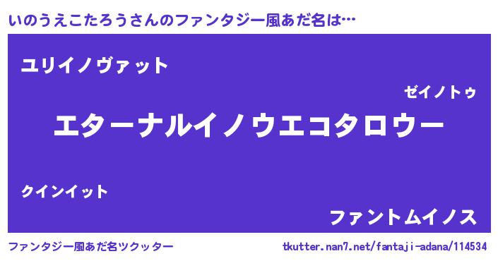 | 女子向けラノベタイトル風あだ名 | 『いのうえこたろうの雑貨屋さん』 |