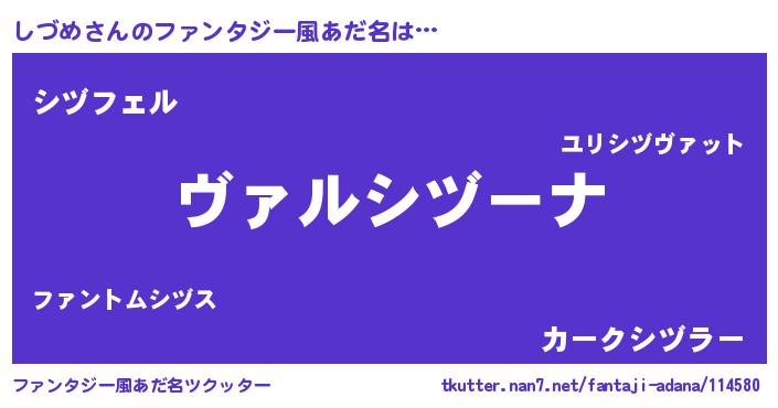 | ヒーロー風カッコイイあだ名 | 『仮面シヅダー』『スーパーシヅメ』 |