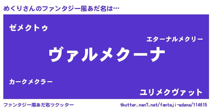 | ヒーロー風カッコイイあだ名 | 『仮面メクダー』『最強戦士メクリ』 |