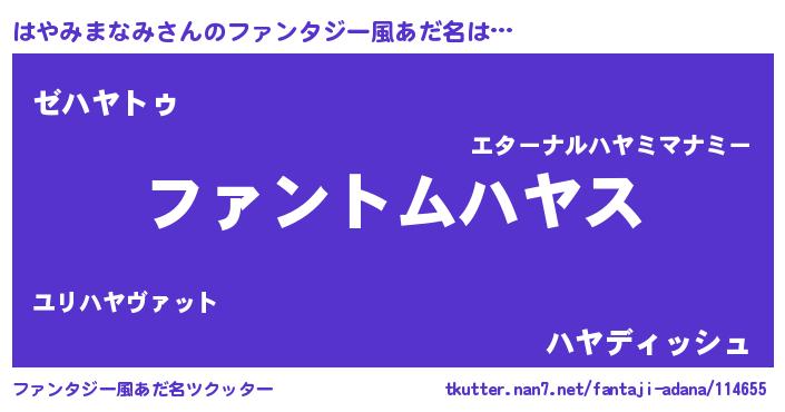 | ポケモン風あだ名 | 『ヒハヤミマナミ』『ハヤセウス』 |