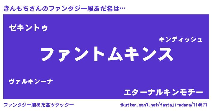 | ヒーロー風カッコイイあだ名 | 『暗黒騎士キン』『サイバー戦士キンモチ』 |