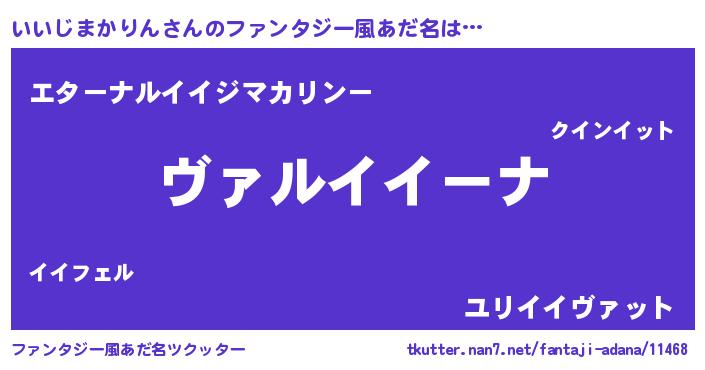 | 男性向けラノベタイトル風あだ名 | 『この素晴らしい世界にいいじまかりんを!』 |