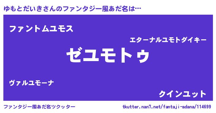 | ポケモン風あだ名 | 『ユモセウス』『ヒユモトダイキ』 |