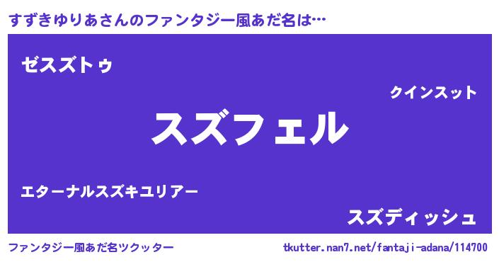| ヒーロー風カッコイイあだ名 | 『スーパースズキユリア』 |