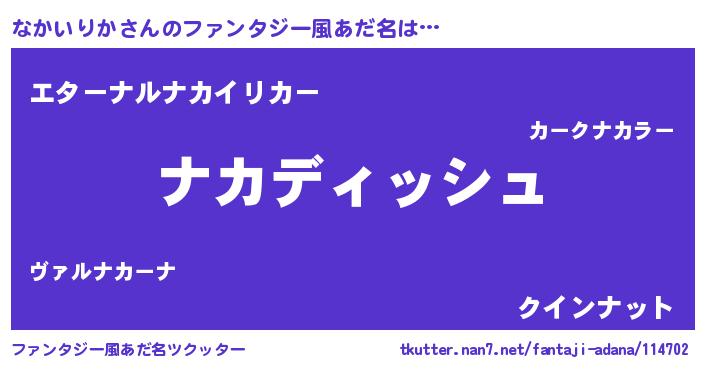 | 意味不明あだ名 | 『永久保存なかいりか』 |