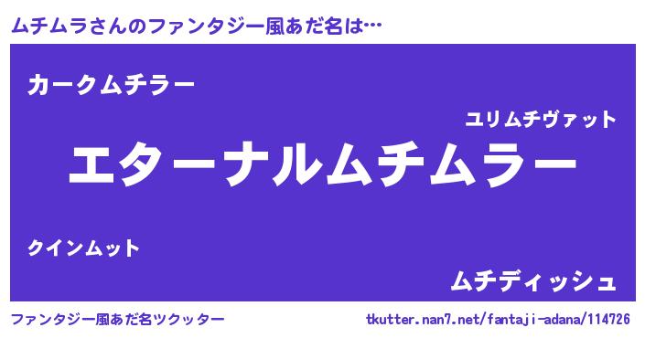 | 男性向けラノベタイトル風あだ名 | 『やはりムチムラの青春ラブコメはまちがっている 』 |