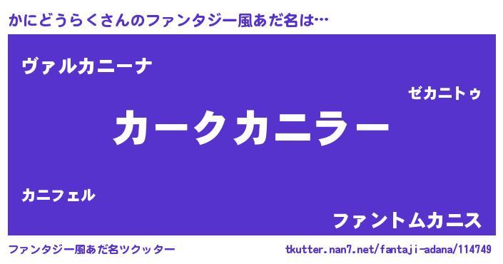 | 男性向けラノベタイトル風あだ名 | 『緋弾のカニドウラク』 |