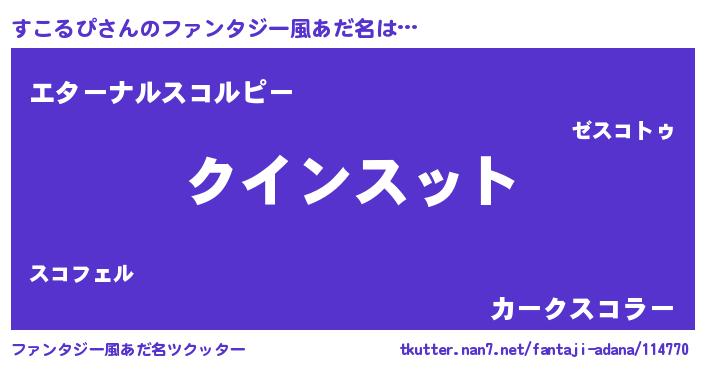 | 欧米人風あだ名 | 『アンジェラ・すこるぴ』 |