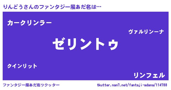 | 男性向けラノベタイトル風あだ名 | 『Re:りんどうから始める異世界生活』 |