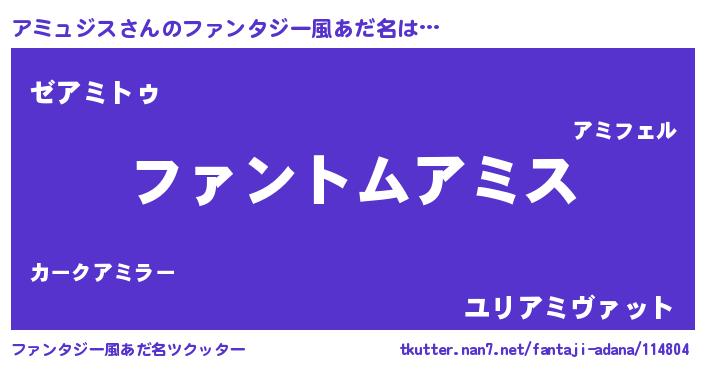 | 男性向けラノベタイトル風あだ名 | 『ダンジョンにアミュジスを求めるのは間違っているだろうか』 |