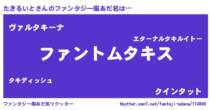 | 意味不明あだ名 | 『とにかく怪しいたきるいと』 |