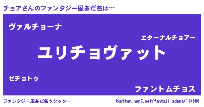 | 意味不明あだ名 | 『めかぶ科チョア属』『自称チョア』 |