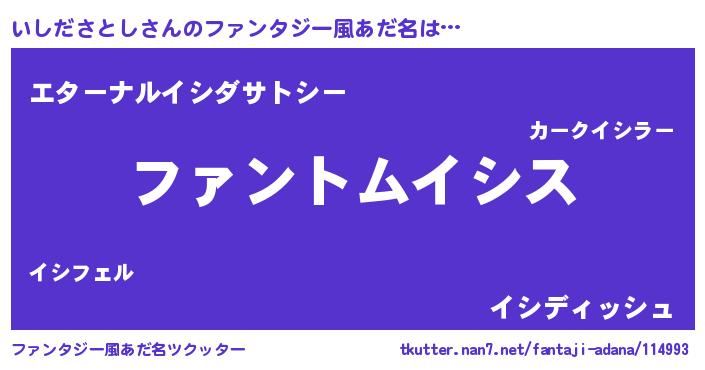 | ポケモン風あだ名 | 『イシゴンZ』『ヒイシダサトシ』 |