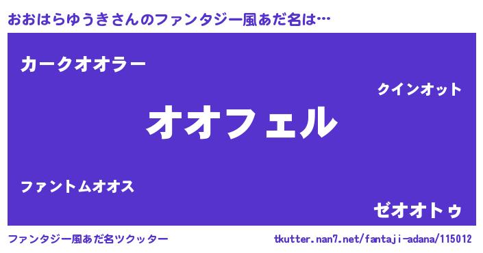 | 男性向けラノベタイトル風あだ名 | 『おおはらゆうきの憂鬱』 |