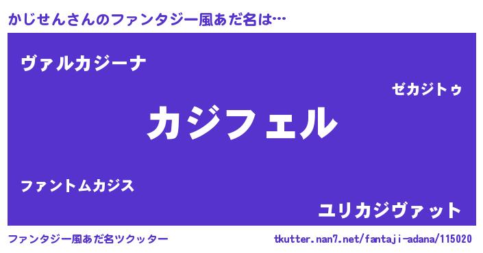 | 意味不明あだ名 | 『ペロリンかじせん』『自称かじせん』 |