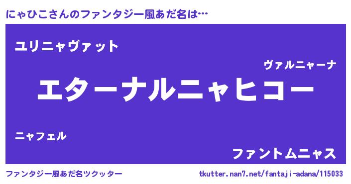 | 欧米人風あだ名 | 『にゃひこクリステル』 |