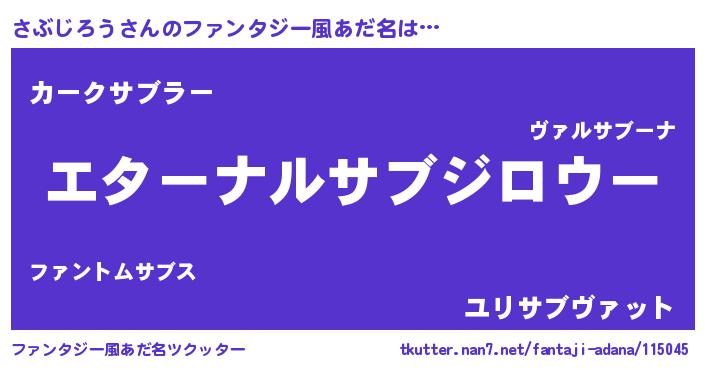 | 意味不明あだ名 | 『さぶじろうフォーエバー』 |