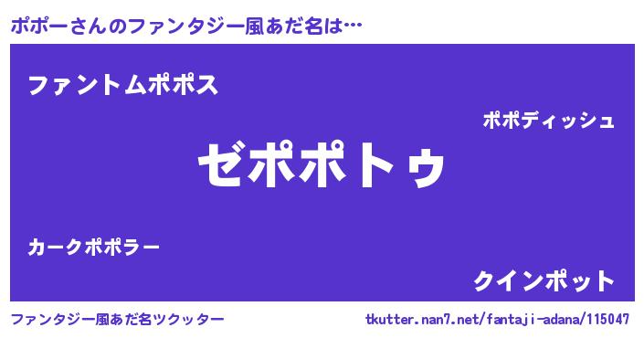 | 男性向けラノベタイトル風あだ名 | 『Re:ポポーから始める異世界生活』 |