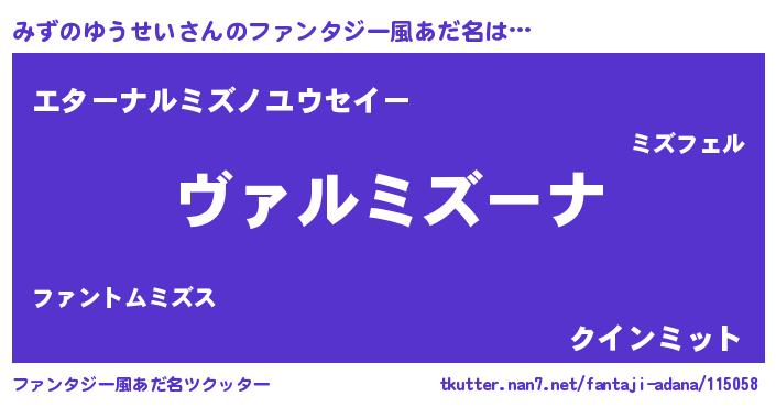 | 男性向けラノベタイトル風あだ名 | 『はたらくみずのゆうせいさま!』 |