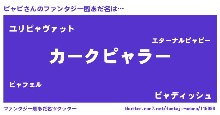 | 男性向けラノベタイトル風あだ名 | 『緋弾のピャピ』『ピャピスレイヤー』 |