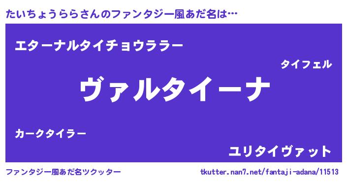女子向けラノベタイトル風あだ名 | 『たいちょうららが死なない童話 林檎のたいちょうららの診療簿』 |