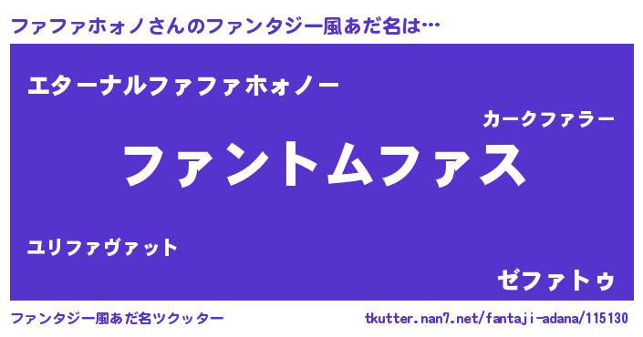 | 男性向けラノベタイトル風あだ名 | 『ダンジョンにファファホォノを求めるのは間違っているだろうか』 |