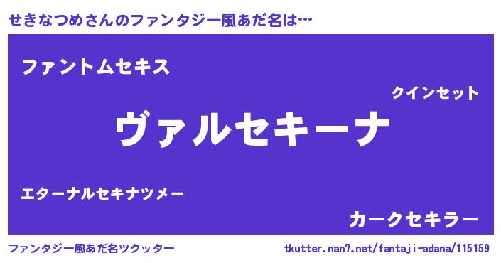 | 男性向けラノベタイトル風あだ名 | 『せきなつめに滅ぼされるだけの簡単なお仕事です』 |