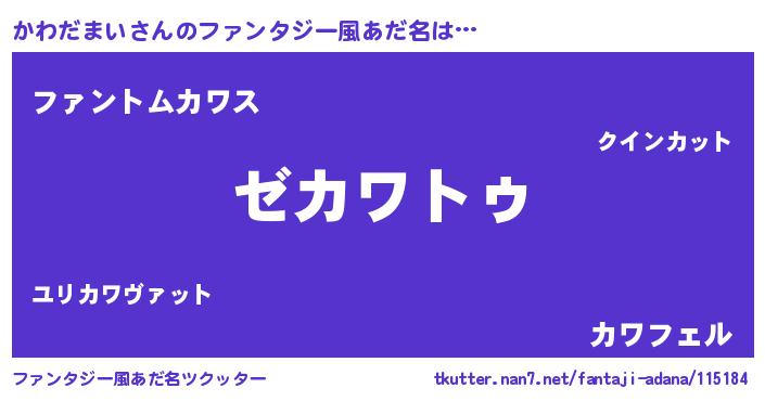 | 意味不明あだ名 | 『自称かわだまい』『ペロリンかわだまい』 |