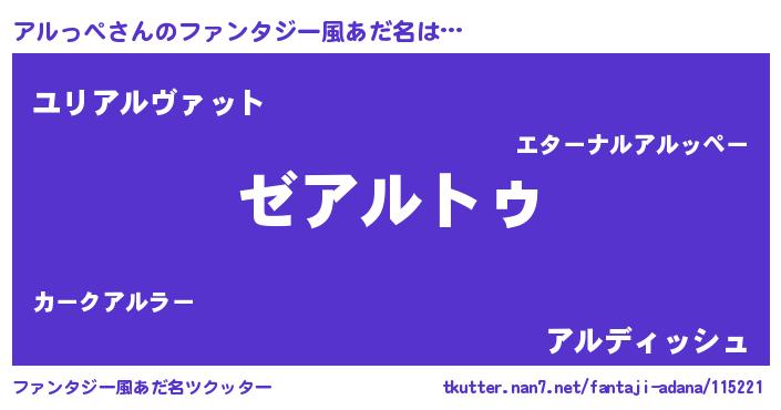 | 男性向けラノベタイトル風あだ名 | 『Re:アルっぺから始める異世界生活』 |