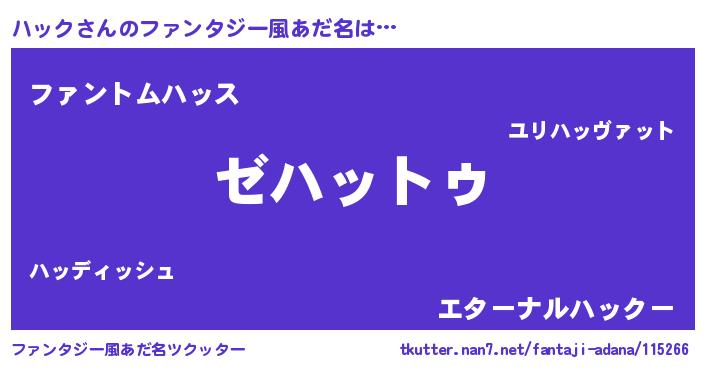 | 男性向けラノベタイトル風あだ名 | 『はたらくハックさま!』 |