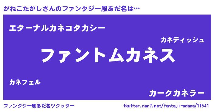 | 男性向けラノベタイトル風あだ名 | 『かねこたかしの嫁は女の子じゃないと思った?』 |