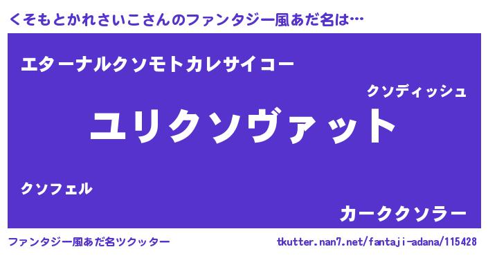 | 男性向けラノベタイトル風あだ名 | 『転生したらくそもとかれさいこだった件』 |