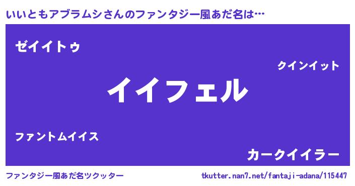 | 男性向けラノベタイトル風あだ名 | 『イイトモアブラムシアートオンライン』 |
