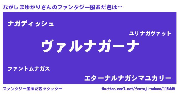| 男性向けラノベタイトル風あだ名 | 『魔弾の王とながしまゆかり』 |