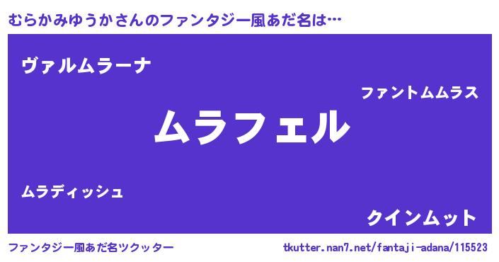 | 男性向けラノベタイトル風あだ名 | 『むらかみゆうかの憂鬱』 |