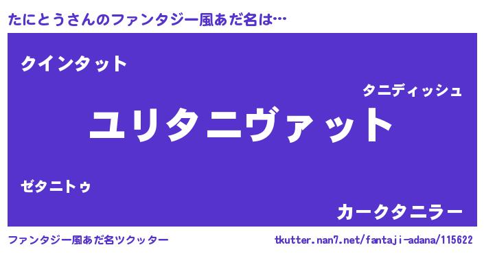 | 男性向けラノベタイトル風あだ名 | 『タニトウスレイヤー』 |