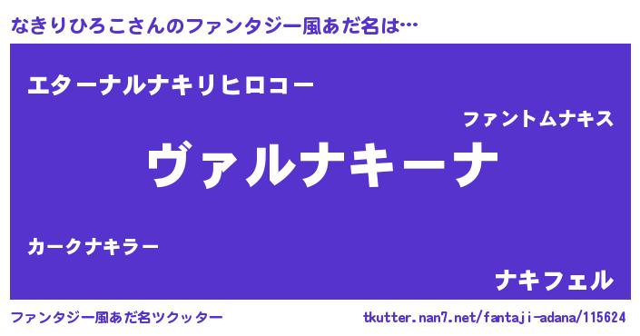 | ヒーロー風カッコイイあだ名 | 『仮面ナキダー』『スーパーナキリヒロコ』 |