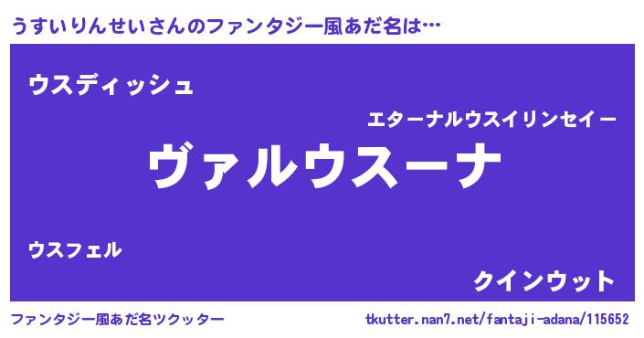 | 男性向けラノベタイトル風あだ名 | 『この素晴らしい世界にうすいりんせいを!』 |