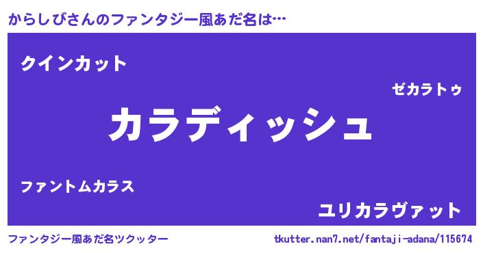 | 男性向けラノベタイトル風あだ名 | 『からしびという概念が存在しない退屈な世界 』 |