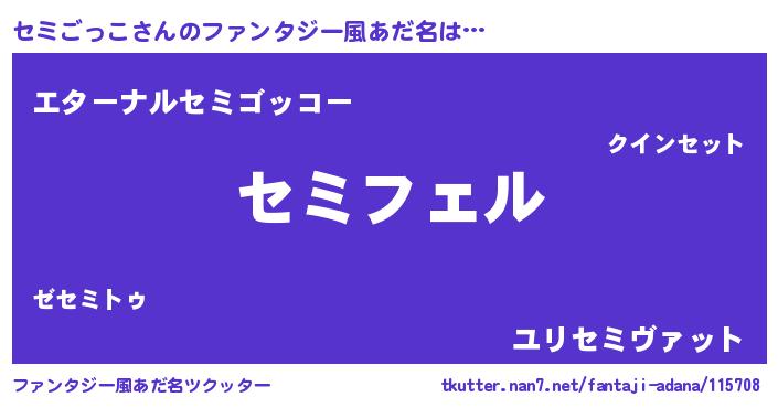 | 自動車の名前っぽいあだ名 | 『セミティマ』『セクア』『フィッセ』 |