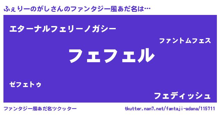 | 男性向けラノベタイトル風あだ名 | 『ふぇりーのがしの憂鬱』 |