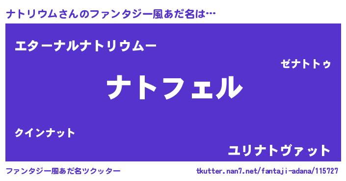 | ヘコむあだ名 | 『ナトっふぃ~』『なまこ酢』 |