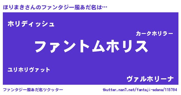 | ポケモン風あだ名 | 『ヒホリマキ』『ホリゴンZ』 |