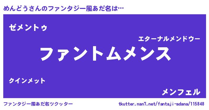 | ヘコむあだ名 | 『めんぷりん』『めんふぇ~』 |