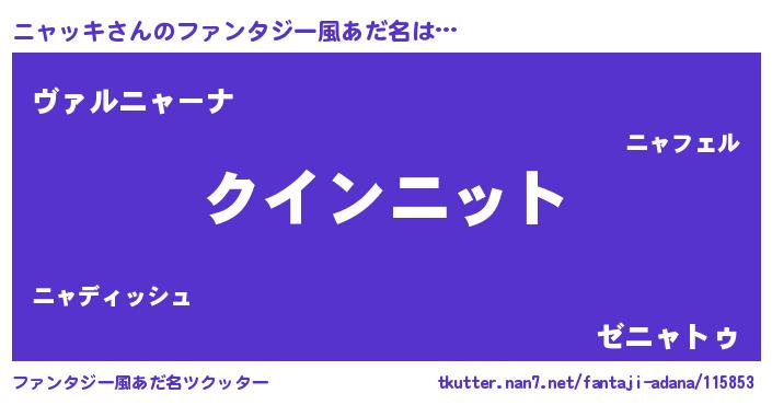 | ポケモン風あだ名 | 『ニックウザ』『ニーャイ』 |