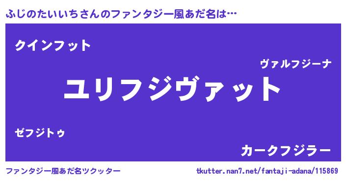 | 男性向けラノベタイトル風あだ名 | 『フジノタイイチスレイヤー』 |