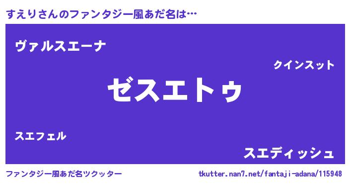 | 男性向けラノベタイトル風あだ名 | 『Re:すえりから始める異世界生活』 |