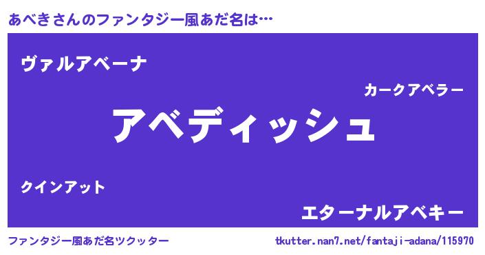 | ヒーロー風カッコイイあだ名 | 『ネオアベキ』『仮面アベダー』 |
